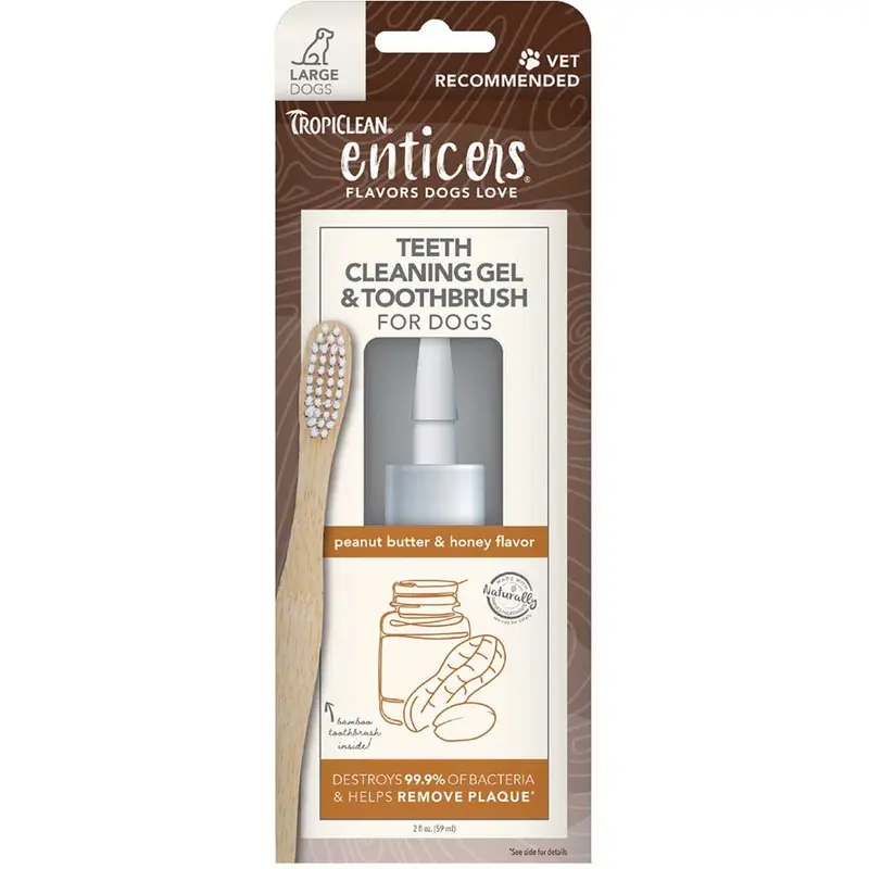Tropiclean – Enticers Dog Cleaning Gel & Toothbrush – Honey/PB – Lg